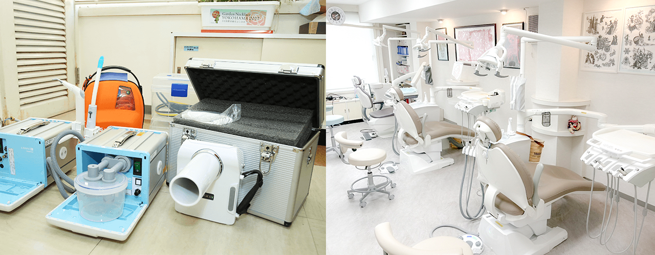 当院では、約20年も前から訪問診療に取り組んできました。これまでの訪問実績は100件以上になり、院長は歯科医師会や保健所にて訪問介護に関する講演も行っています。また、副院長も訪問歯科医療に関する講習を受け、技術と知識の向上に努めております。